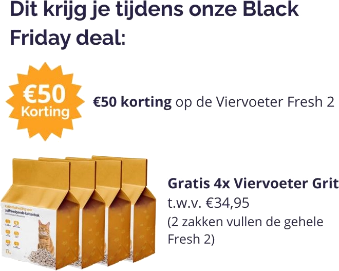 Nooit meer zelf scheppen! Ervaar gemak en hygiëne met de Viervoeter automatische kattenbak, de best beoordeelde automatische kattenbak van Nederland en België. Meer dan 5.500 tevreden kattenbaasjes gingen je al voor en maakten de overstap naar een zorgeloze, frisse zelfreinigende kattenbak.