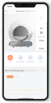 Ja, vanaf ongeveer 700 gram zal de zelfreinigende kattenbak je kitten detecteren. Hoe lang is de garantie van Viervoeter? Onze producten worden geleverd met 2 jaar garantie. De garantie dekt de werking van het apparaat, inclusief de motor en de app. Gebruiksschade valt niet onder de garantie.